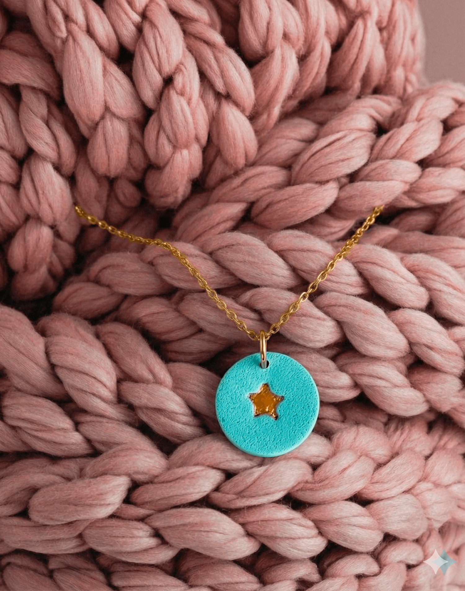 Nuestros colgantes de arcilla polimérica, con cadena de acero inoxidable dorado, son el equilibrio perfecto entre originalidad y elegancia. Con un diámetro de 2 cms, están diseñados para aportar luz y estilo sin resultar excesivos, convirtiéndose en ese detalle favorecedor que marca la diferencia.