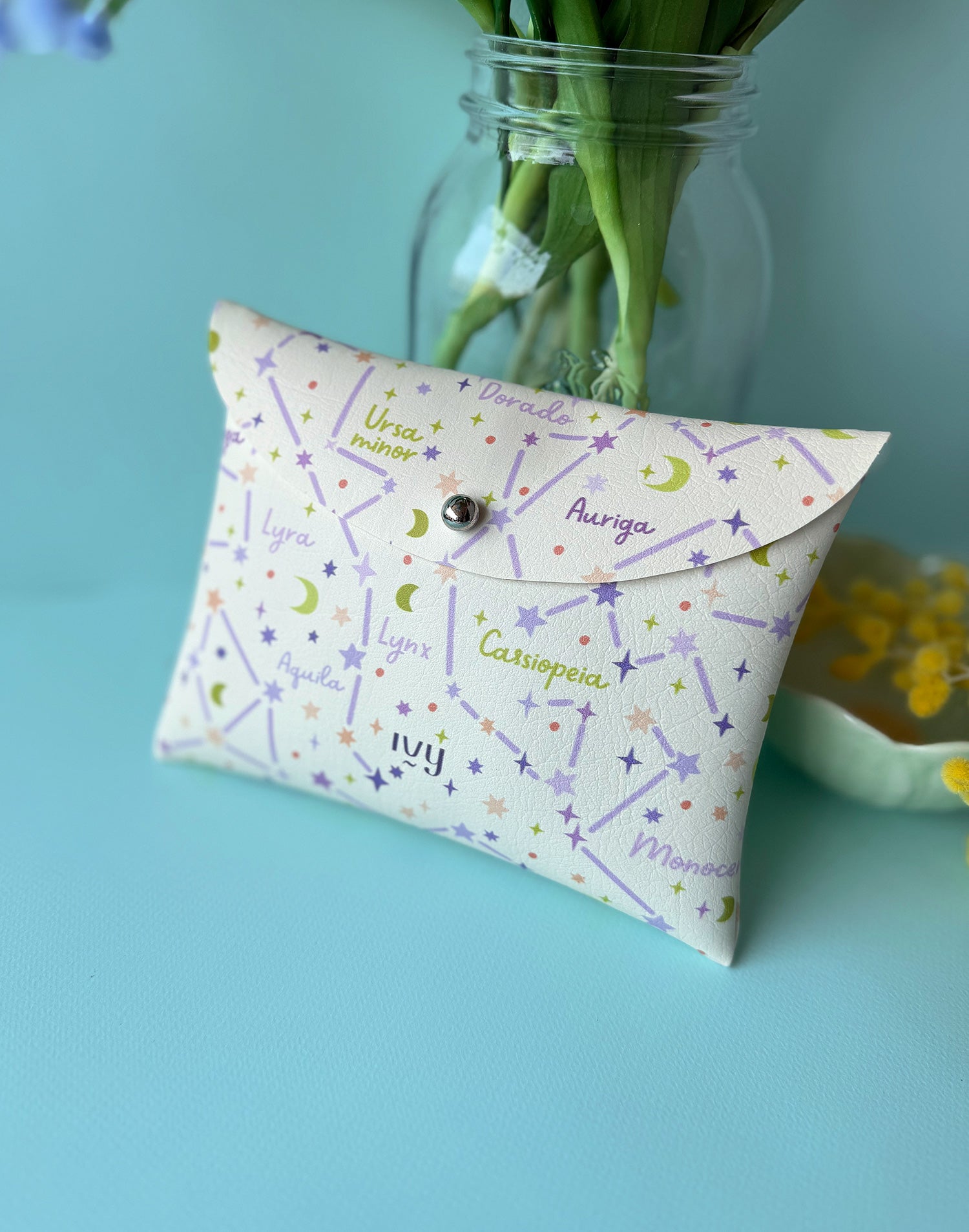 Compacta y práctica, perfecta para llevar tarjetas, monedas o pequeños imprescindibles. Su acabado en polipiel y su diseño coordinado completan el conjunto. (18x15 cms)