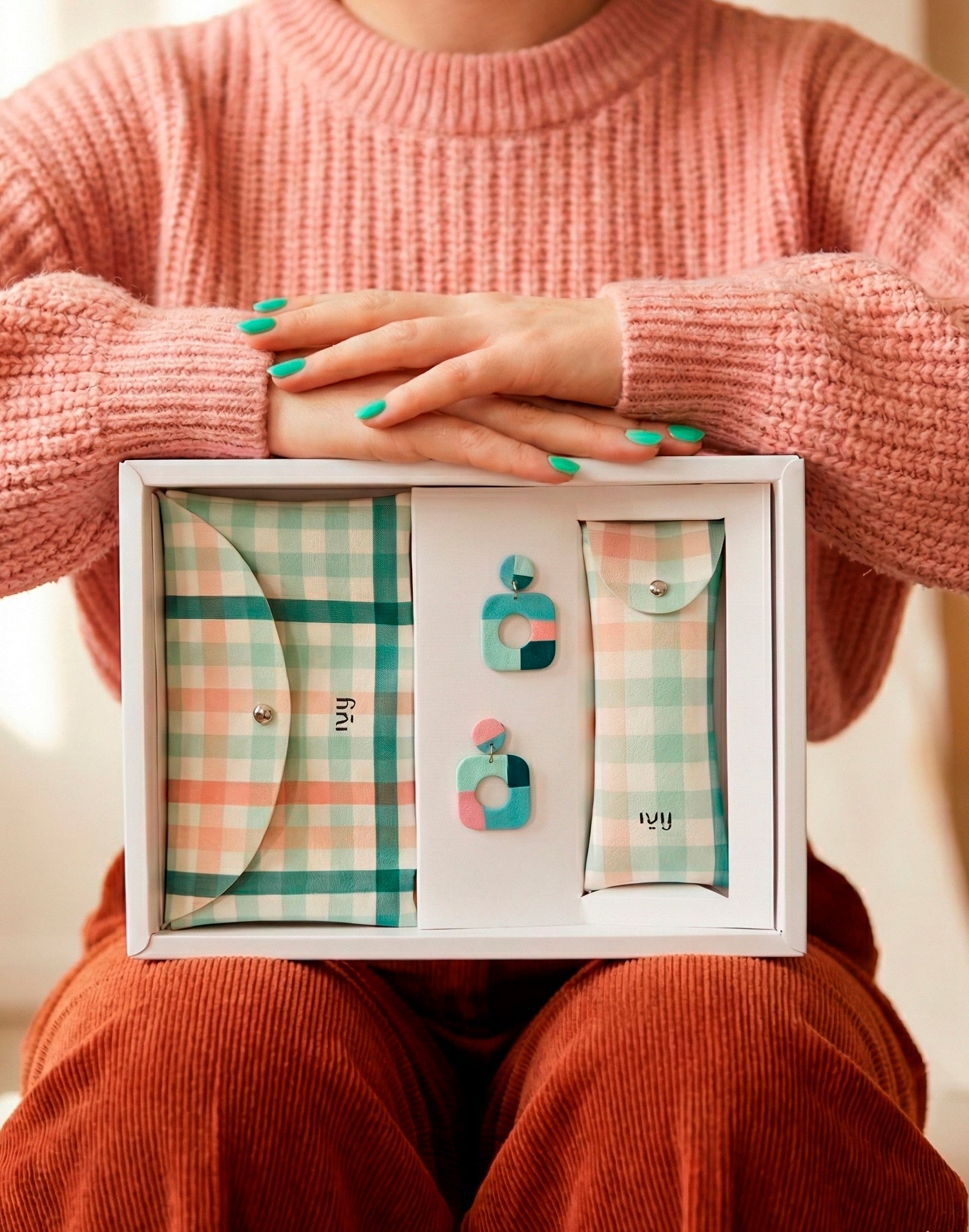 El Pack Cuadros azules es una selección especial de accesorios pensada para acompañarte en tu día a día con color, suavidad y un aire artesanal. Un conjunto equilibrado entre diseño y funcionalidad, presentado en una caja cuidada al detalle, ideal para convertirlo en un regalo lleno de encanto.